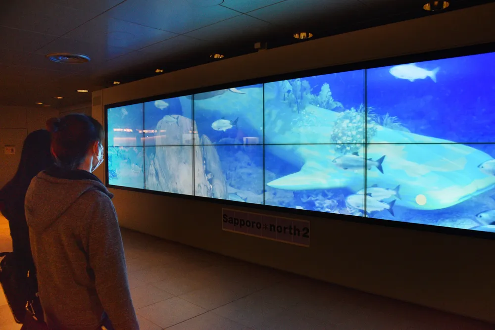 札幌市制100周年を記念して実施した市民向けワークショップで制作した「未来のさっぽろの水族館」をテーマにしたCG映像が、札幌駅前通地下歩行空間の大型デジタルサイネージで公開されている。画面の中で、想像上の海の生き物などが優雅に泳ぎ、幻想的な世界観を表現している。