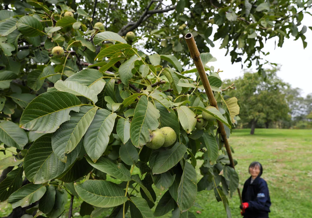 パンや菓子のトッピング、お酒のつまみとして知られるクルミ。国内で流通する99%以上は輸入品ですが、空知地方中心部の美唄市でも栽培されているのをご存じですか。流通量が少ない上に、輸入品より香り高く、甘みも強い「幻のクルミ」とも呼ばれています。市内はかつてクルミ農家20戸以上が集積する一大産地でしたが、一度は姿を消し、現在は上村農園の1戸のみが栽培を続けています。市内でクルミ栽培が盛んだったころに老舗菓子店の美唄長栄堂が発売した和菓子「くるみ餅」は、年間約5万個販売する根強い人気を誇ります。美唄産クルミを守り続ける生産者と菓子店を訪ねました。