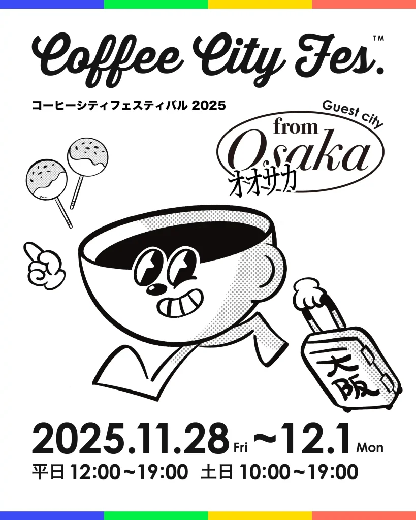 街とコーヒーの関係をテーマにしたカルチャーフェス「COFFEE CITY FESTIVAL SAPPORO 2025」。札幌の街に根づくコーヒーショップやロースターが集い、それぞれの哲学や味わいを通して“マチノカルチャー™”を表現します。今回のゲストシティは笑顔あふれる街・大阪。個性豊かなロースターたちが札幌に集まり、街と街、つくり手と飲み手をつなぐ新たな出会いが生まれます。会場では各ロースターのコーヒーを飲み比べながら、街と人、そしてコーヒーがつなぐ文化を感じてください。
