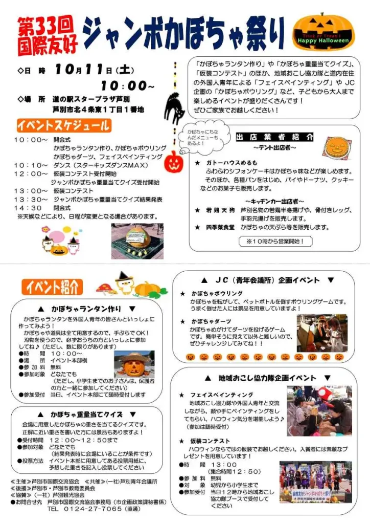 - 10 国際友好ジャンボかぼちゃ祭り ※10/11(土)/芦別