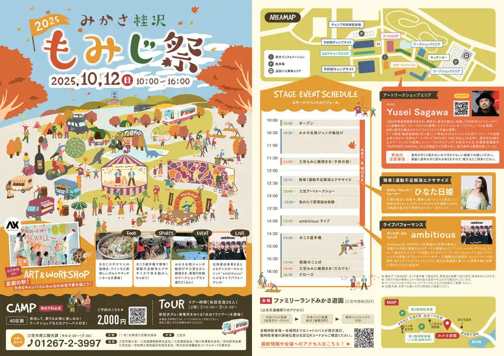 秋の三笠で、キャンプ、体験型プログラム、グルメにショッピングと、子供から大人までみんなで楽しめそうな内容です。