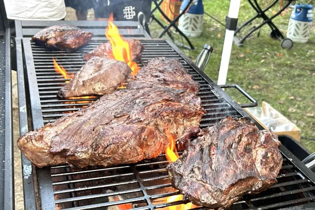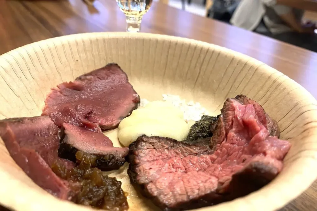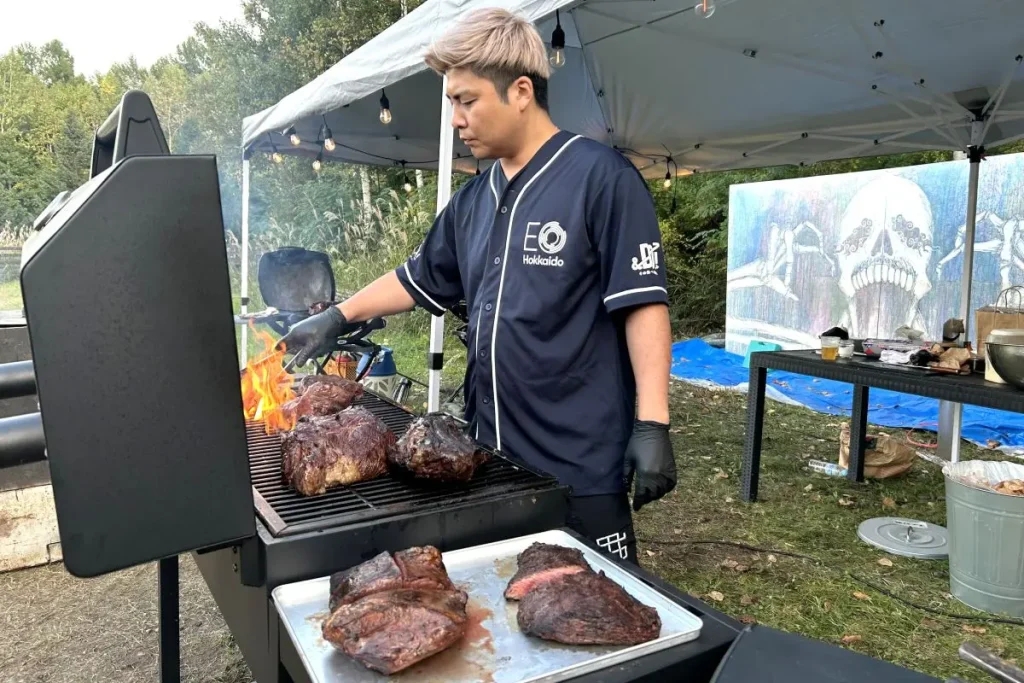 一流シェフの手で調理されたブランド和牛「知床牛」と羊肉「士別サフォーク」に加え、サウナも楽しめるイベント「ガストロノミート サウナナイト」が9月29日、札幌市南区のアウトドアを楽しむ拠点「芸森ワーサム」(芸術の森3)で開かれました。参加者は自然のなか、道内でも口にする機会の少ない希少な肉を味わい、来場した和牛とサフォークの生産者から、飼育方法や肉へのこだわりなどについて話を聞きました。