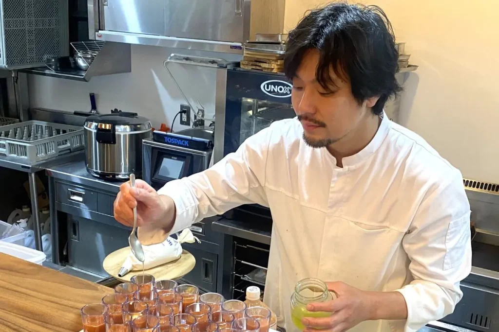 ほかに、東日本大震災で被災し、廃業した相馬市松川浦の民宿「おびすや」の青のりのつくだ煮を再現したものや、和歌山県のしらす、気仙沼マグロなど、下国シェフが日本各地を巡った際に出会った食材を活かしたメニューが登場しました。