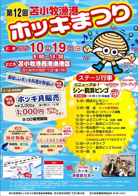 | 【問い合わせ】0144-35-0111 苫小牧漁港ホッキまつり実行委員会事務局(苫小牧漁業協同組合内) |
