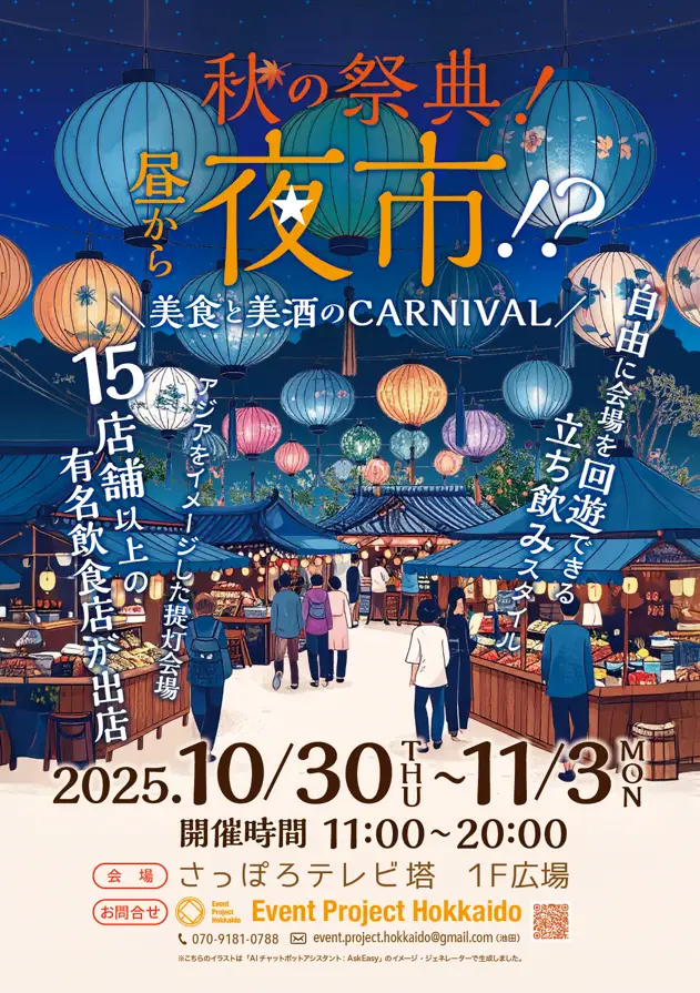 =終了= 昼から夜市⁉〜美食と美酒のCARNIVAL〜 ※10/30(木)~11/3(月・祝)/札幌