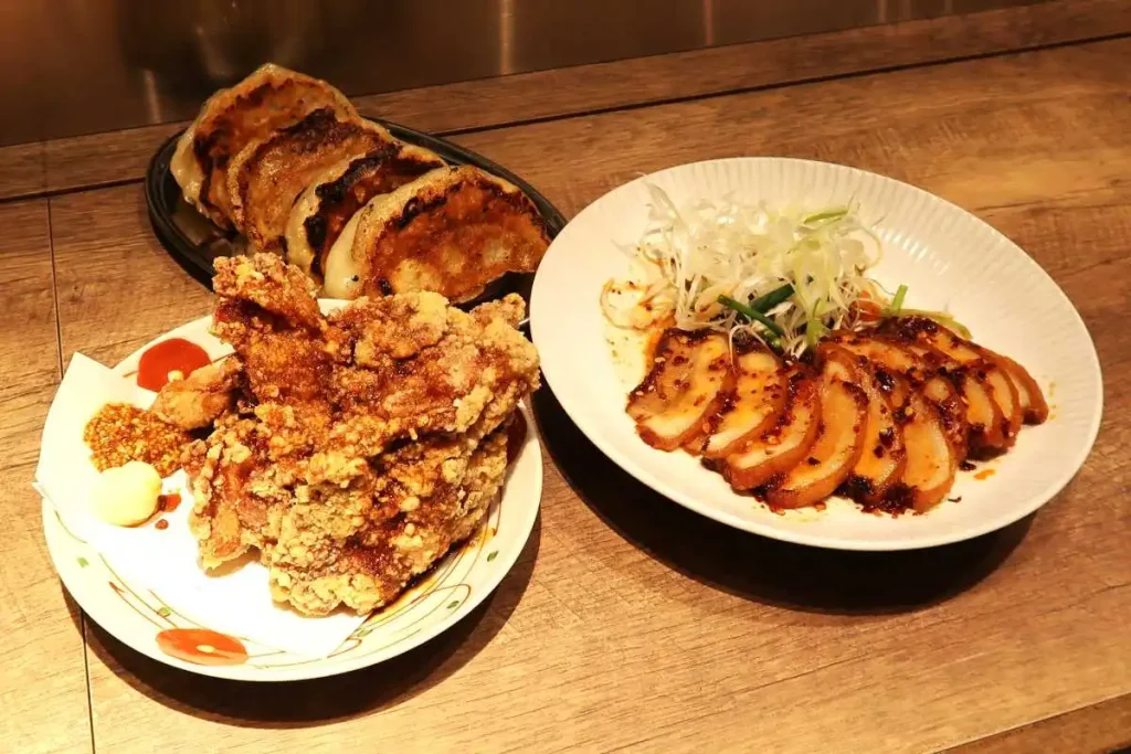 名物の「大粒餃子」(4個940円)や「タレザンギ」もありますが、タレザンギは通常の店舗では3個セットで出していますが、ここでは「いろいろなものを少しずつ、お酒と一緒に楽しんで」と、2個540円に。あまじょっぱいタレで、サクサク、ジューシーなおいしさは変えず、「酒飲みへの配慮」を忘れません。大粒餃子も10センチ近いボリュームや、もっちりした皮と野菜たっぷりのあんのヘルシーなおいしさはそのままです。