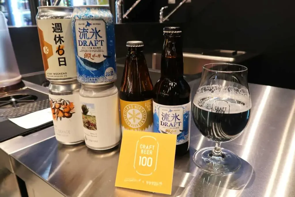 大通バルの真ん中にあるのは、「クラフトビール100(ハンドレット)」。店内に置かれたショーケースには、日本全国各地のクラフトビールが約100種類。人気の有名ブルワリーのものから、小規模なレアな醸造所のものまで幅広く、どれも1本1100円で飲むことができます。