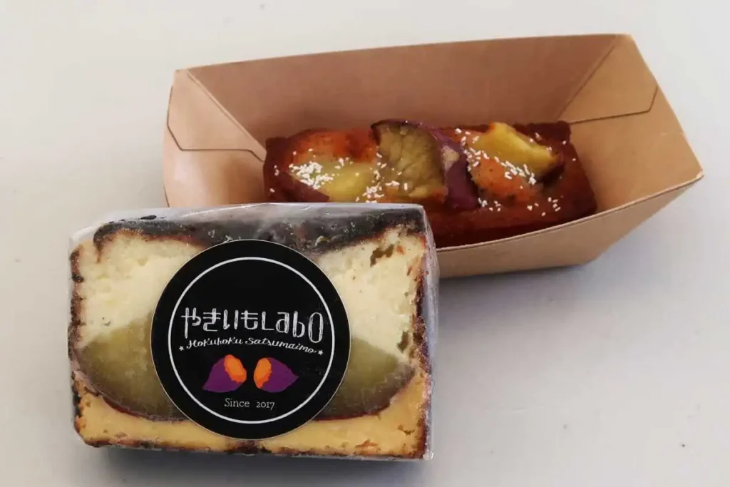 札幌市中央区の「やきいもLabo」のやきいもはドライアライブという機械で、真空状態にして蒸し、圧力を下げて乾燥させて仕上げた紅はるか。皮も食べることができ、栄養価も高いそう。ほかに、焼き芋テラス限定で、「やきいもブリュレ」や「雪塩imoンシェ」、「焼き芋バスクチーズケーキ」などのサツマイモスイーツも販売しています。雪塩imoンシェは、バター感が強く、ほどよい塩味。バスクチーズケーキもかすかな塩味とチーズの香りで、どちらもスイーツというより、ワインやビールのお供にも良さそうです。