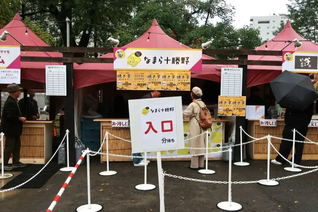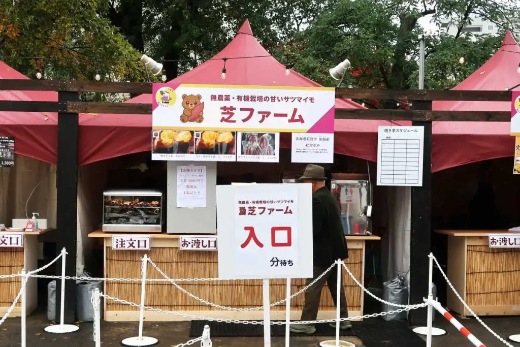焼きいものほか、スイートポテトや大学いもなどサツマイモを使った秋の味覚を楽しむ「さっぽろ焼き芋テラス2025」が10月24日(金)、札幌市中央区の中島公園南9条広場で始まりました。過去最多の焼きいも店9店が出店するほか、スイーツやキッチンカー、道産サツマイモの焼酎を提供するブースなどが登場し、大勢の人でにぎわっています。11月3日(月・祝)まで。