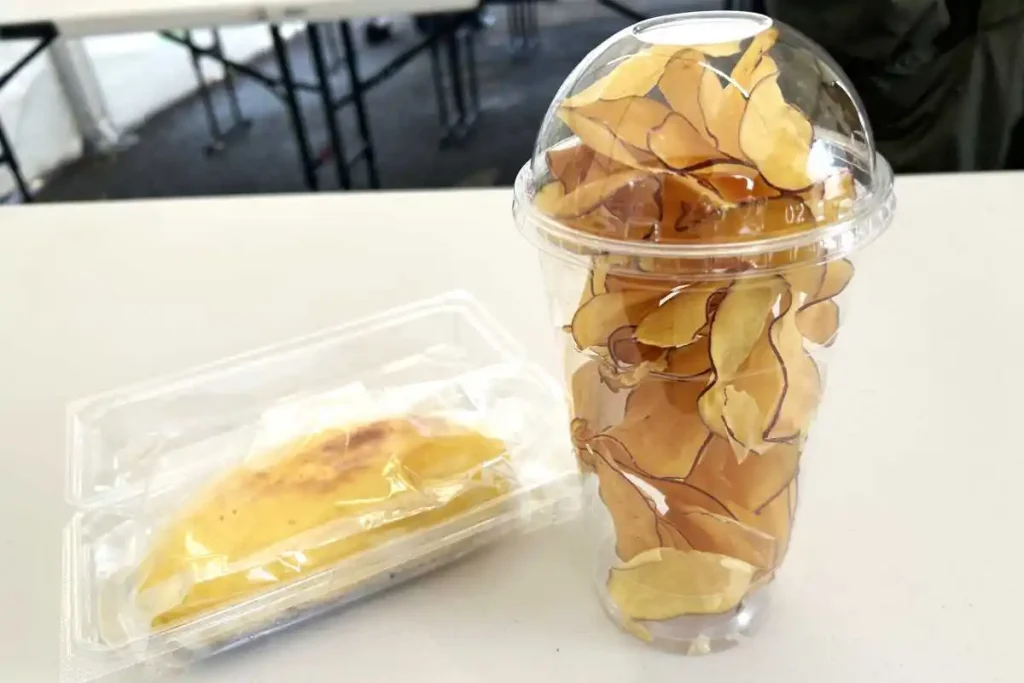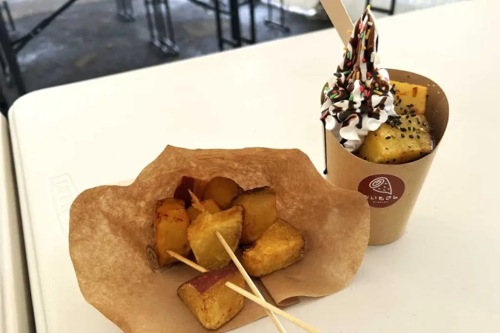 キッチンカーも2台出店し、うち1台はサツマイモに特化した「おいもさん」。大学いもやフライドおさつを販売しています。大学いもははちみつを使わず、さらっとした蜜が特徴。軽やかな甘さで、食べ飽きせず、添えられたホイップクリームをディップして「味変」もできます。フライドおさつは、バターしょうゆや塩コショウなどの「しょっぱい系」のフレーバーを選ぶことができ、ガーリック塩はほんのりとしたガーリックの風味と優しい塩味で、お酒のおつまみにも良さそうです。