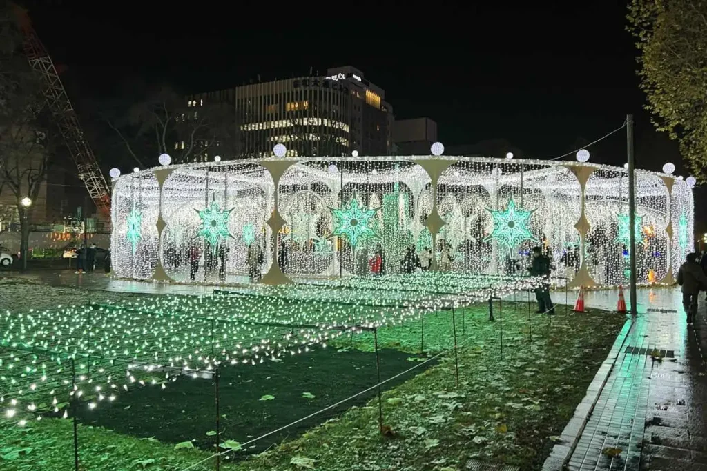 ホワイトイルミネーションは1981年、大通西2丁目会場で約1000個の電球を灯したのが始まり。年々、規模や内容を充実させ、45回目の今年は昨年と同規模の約77万個の発光ダイオード(LED)を使い、大通公園など5会場で実施されています。