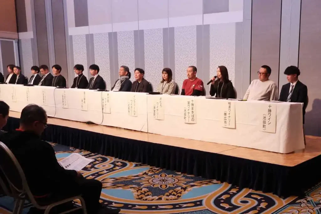 試飲の前にはセミナーが開かれ、参加した29ワイナリーの中から、16ワイナリーが2025年のブドウのでき具合やおすすめのワインについて報告。仁木町でヴィニフェラ十数種類を栽培するDomaine Blessは「(ブドウが成熟する夏の高温などで)ピノ・ノワールにとっては厳しい年で、前年より収量は20%減となりましたが、全体的な収量は20%増」といい、小樽市塩谷と余市町に畑を持つ小樽市のOSA WINERYは「鳥の食害でシャルドネは半減してしまいました。高温多湿で収量としては厳しいものの、選果を徹底し、果汁はいい状態です」と話しました。
