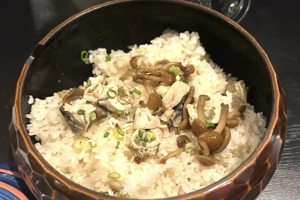 この日は、コースに入っていない赤井川産ヒグマの赤ワイン煮も一口、サービスしてくれました。くさみは一切なく、柔らかく煮込まれていますが、しっかりした食感が残り、「肉を食べている」実感があります。最後のカキの炊き込みご飯まで、海と山と畑の恵みを存分に味わうことができます。