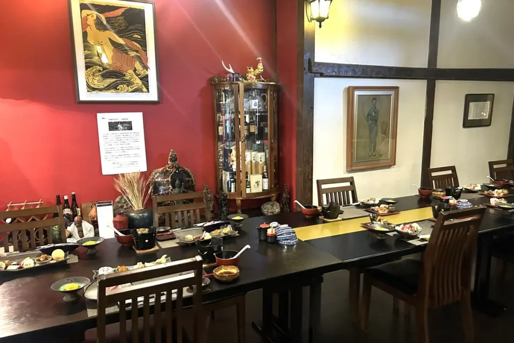 午前中に札幌を出発し、積丹町に入るとちょうど昼時。「なごみの宿 いい田」でランチをいただきます。網元が建てた築100年の建物を手作業で改築したそうで、黒光りした太い柱や梁がそのまま生かされています。食事は、できるだけ積丹産や北海道産の旬の食材を使い、新鮮さだけではなく一手間かけた、先付けから飯物まで全9品の本格的な和食のコースです。