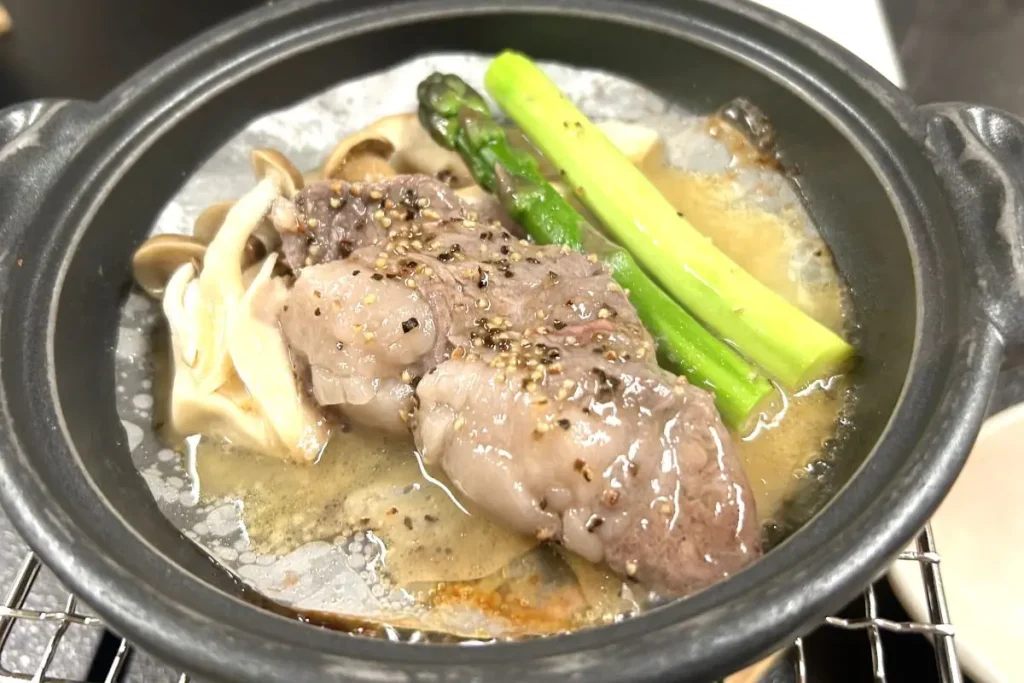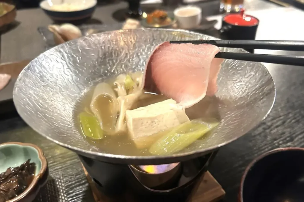 お造りやブリしゃぶで出されたのは、積丹のブランドブリ「鰤宝(しほう)」。7キロ超え、脂肪分15%以上のブリを船上で活け締めし、しっかり冷やして鮮度を保ったもので、東しゃこたん漁協(古平町)がブランド化を進めています。同漁協のブリ漁獲量の1%ほどしかとれない希少なブリです。脂がのっており、融点が低いため口の中でとろけるような食感を楽しむことができます。