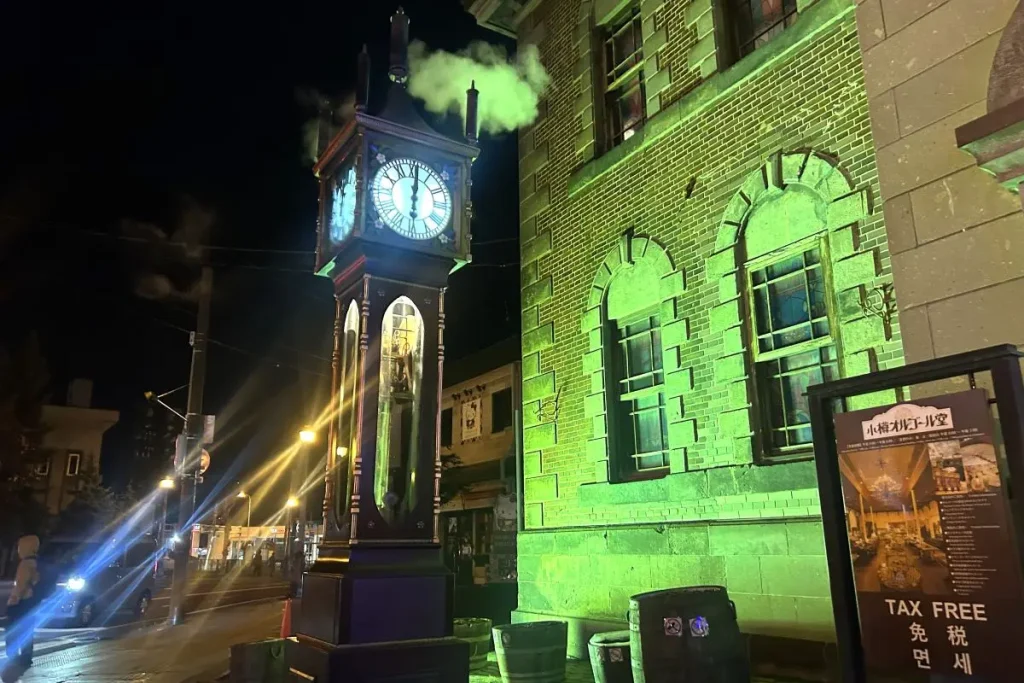 ライトアップされているエリアにはれんが倉庫を利用したレストランや美術館、土産物店などが建ち並び、にぎやかですが、永岡さんは「中央橋の北側の北運河が今、注目スポットです。1923年につくられた当時の小樽運河の姿が残り、明治・大正期の歴史的な建物もあります」と話します。一時は解体される予定だったものの、保全運動が起こり市が譲り受けた旧北海製缶小樽工場第3倉庫もあり、ライトアップされています。