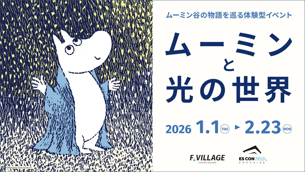 北海道ボールパーク Fビレッジで開催される「ムーミンと光の世界」は、ムーミンの物語の背景に登場する四季折々の美しい情景を、幻想的な光で描き出す没入体験型イベントです。春のやわらかな日差し、夏の海にきらめく光、冬の白銀の輝きなど、ムーミン谷の豊かな自然をイメージした光の演出で、会場一帯を包み込みます。光が差し込む海の中やオーロラの下を歩くような体験を通じ、まるで物語の世界に入り込むようなひとときを楽しめます。普段は入ることのできない野球場のフィールドで、北欧の遊び「モルック」体験やオリジナルランタンを作るワークショップが開催されるほか、キャラクターをイメージした特別なコラボメニューも登場します。四季を感じる光の演出とともに、心温まる特別なひとときを過ごしてください。