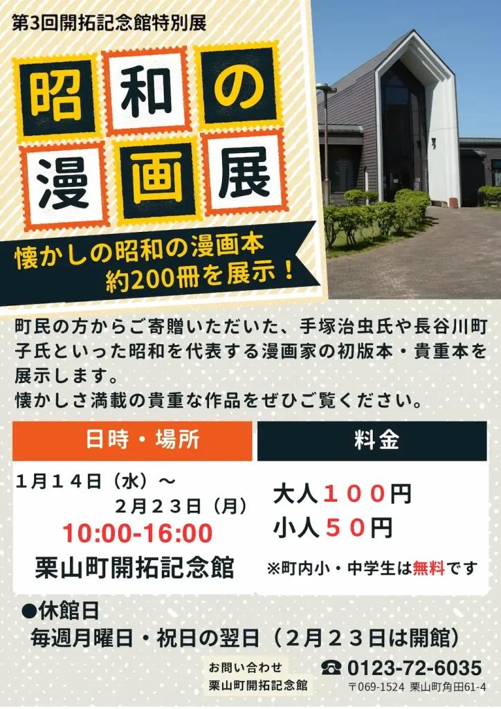 - 14 =終了= 開拓記念館特別展「漫画展」 ※1/14(水)~2/23(月・祝)