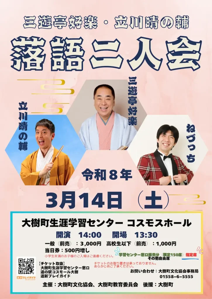 =終了= 三遊亭好楽・立川晴の輔 落語二人会 ※3/14(土)/大樹町